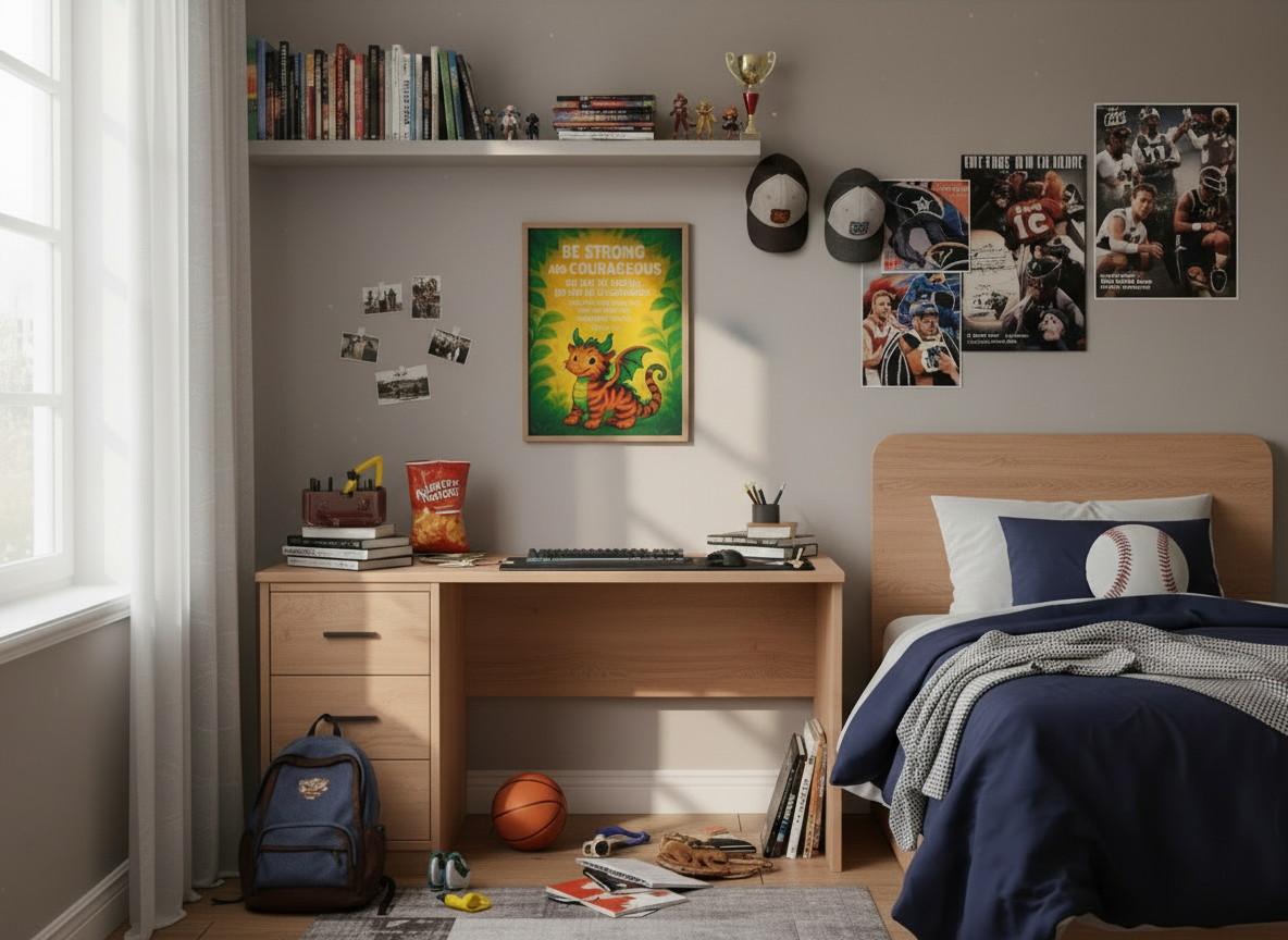 Empower young hearts with this vibrant Joshua 1:9 tiger-dragon hybrid wall art, featuring the bold reminder to “Be strong and courageous… for the Lord your God will be with you wherever you go.” This energetic fantasy design is perfect for middle school rooms, reading areas, or Christian classrooms that want to promote courage and faith.
