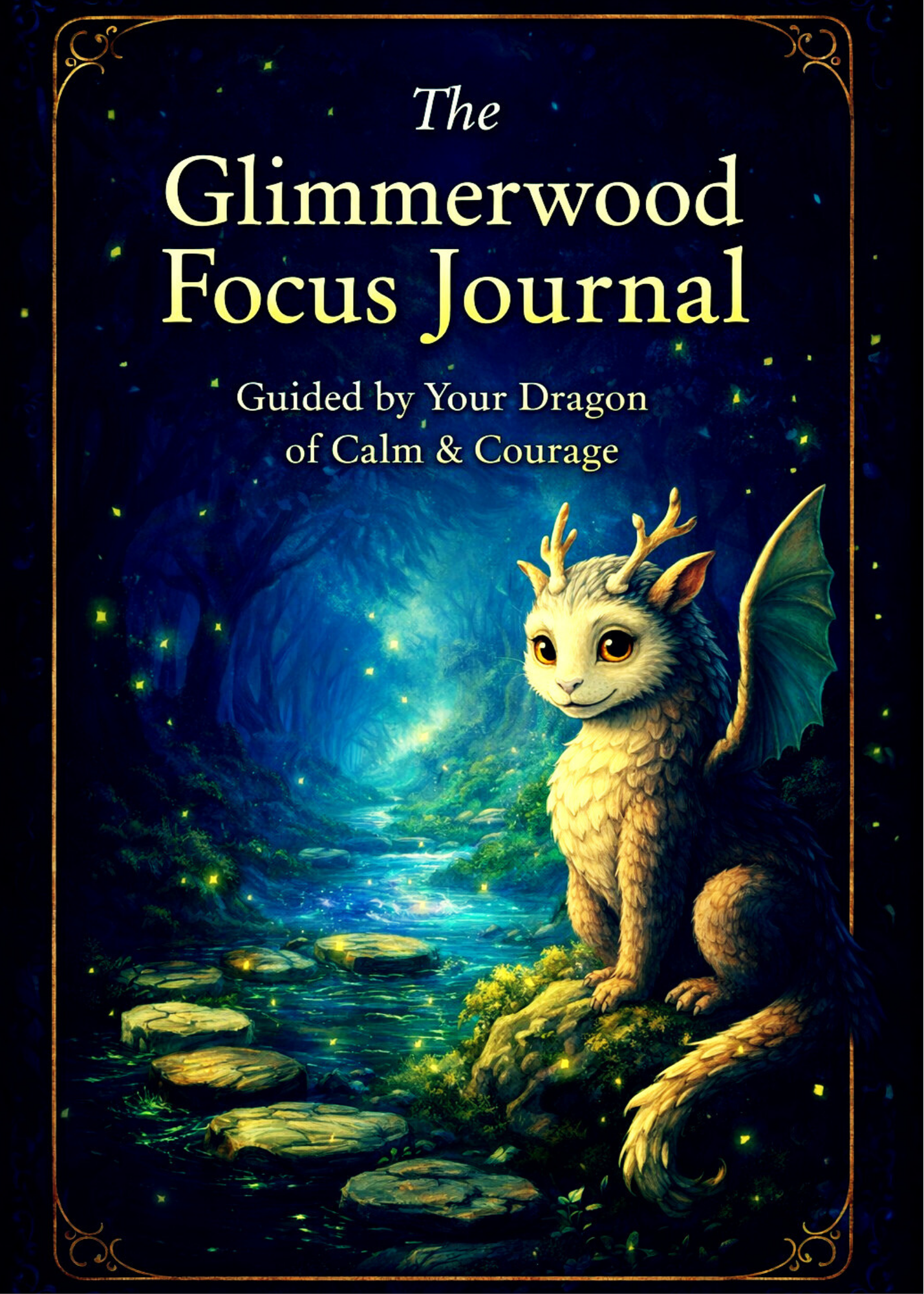 The Glimmerwood Focus Journal gives children a gentle, imaginative way to slow down, organize their thoughts, and build confidence — all through the magic of story, reflection, and creativity.